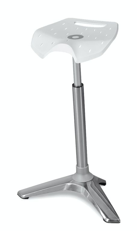 Het bijzondere van de ONGO Stand sta kruk is duidelijk zichtbaar. Het moderne strakke ontwerp valt iedereen direct op. De drietenige aluminium gepolijste voet, met anti-slip glijders, vormt de solide basis van de Stand. De combinatie van zitting en gaslift is in een witte of zwarte uitvoering leverbaar. De zitting zet qua design de strakke lijnen door en is voorgevormd voor een betere zithouding. Op wens is deze kunststof zitting te voorzien van een comfortverhogend kussen, bekleed in drie kleuren zacht microvezel of in duurzaam, hygiënisch Skai Nature Base kunstleder in een neutrale kleur grijs.